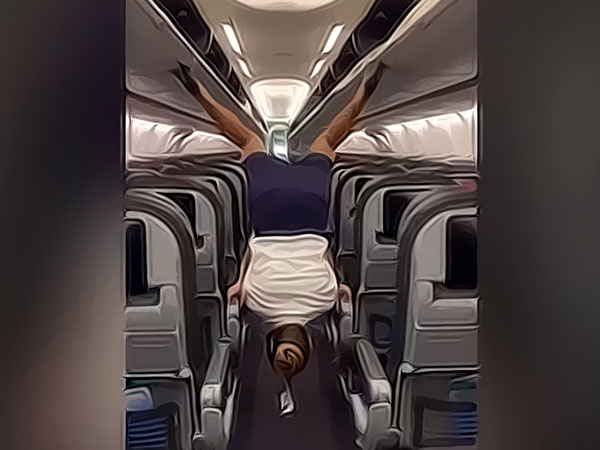 Американская стюардесса выполнила акробатический трюк на борту самолета